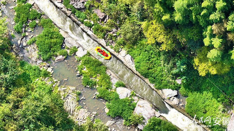 俯瞰霍山大峡谷漂流。人民网 郭昊摄