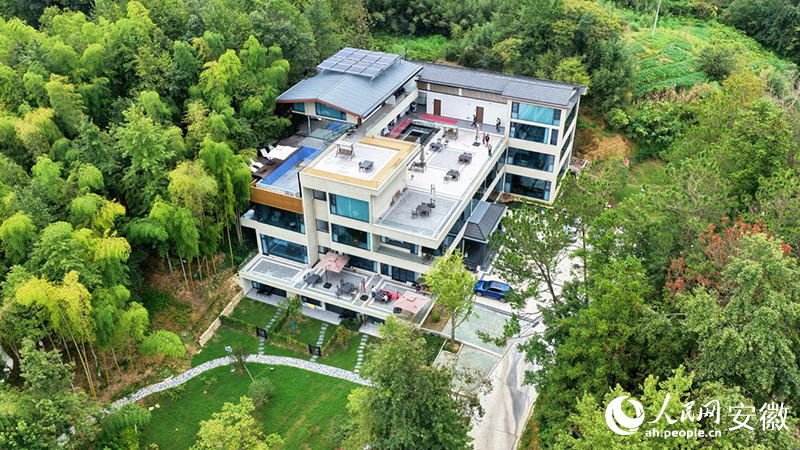 俯瞰霍山县的漫宿竹宁溪语民宿。人民网 郭昊摄