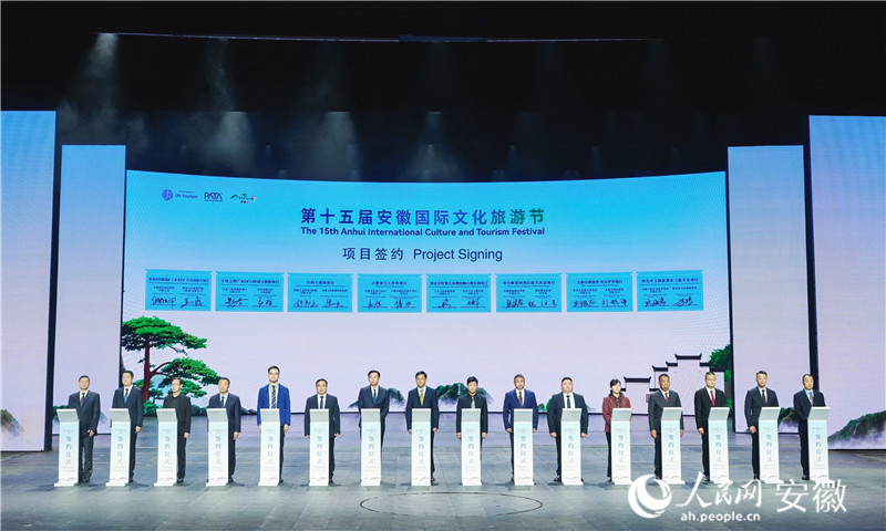 现场,安徽省政府与中国旅游集团签署战略合作协议,安徽省文化和旅游厅与上海携程商务有限公司、支付宝(杭州)数字服务技术有限公司等签署合作协议。16个文旅产业项目集中签约,总投资额达124亿元,项目涵盖度假、康养、文创等多种业态。